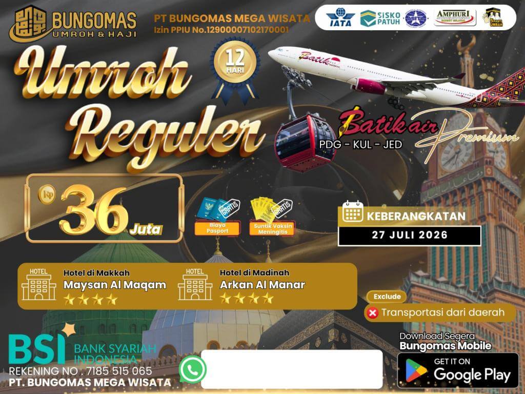 Reguler 12 Day 27 JULI 2026 Starting Padang ( All In Pasport + Vaksin )